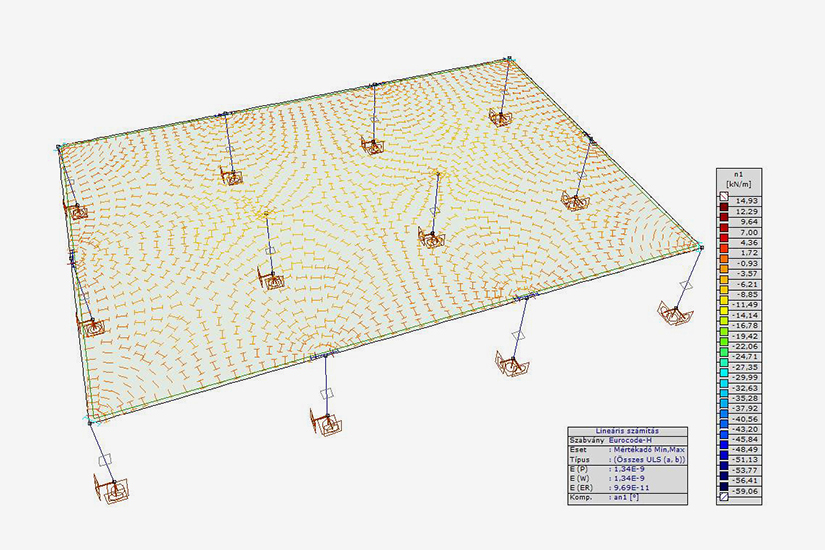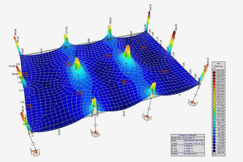 Egy födémlemez esetében is majdnem mindegy a költségeket tekintve, hogy 20 vagy 22 cm vastagságú, de tartószerkezeti szempontból nagyon nem. Ha igazán spórolósra vennénk, akkor csak és kizárólag ortogonális trajektória irányú vasalást terveznénk be, követve a lehető leghatékonyabb vasvezetési irányokat. Ezzel valamennyi vasmennyiséget lehet ugyan spórolni, de nem nehéz belátni, hogy az X és Y irányokba lerakott betonacélokkal mennyivel szaporább és egyszerűbb az élet. Tehát igen, ilyen esetekben szándékosan túlméretezzük a szerkezetet.